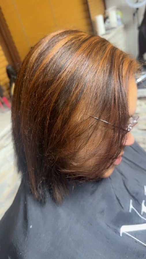 Owner NK specializes in hair services for women and men, including highlights; color; cuts; silk press; relaxers; blowouts; and loc maintenance