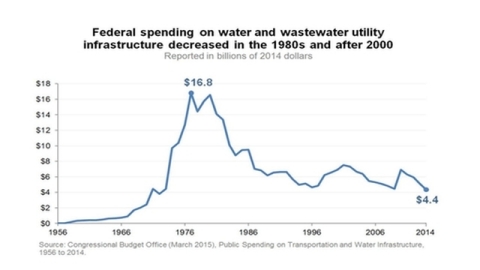 Federal spending on water and wastewater utility infrastructure decreased in the 1980s and after 2000 (Graphic: Business Wire)