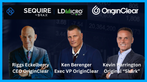 OriginClear CEO Riggs Eckelberry and Executive Vice President Ken Berenger will highlight OriginClear's crowdfunding campaign, now in preview invitational stage, during their presentation. Kevin Harrington, an original “shark” on the hit TV show Shark Tank, and co-founding board member of the Entrepreneur’s Organization, will address the audience in a recorded message. (Graphic: OriginClear)